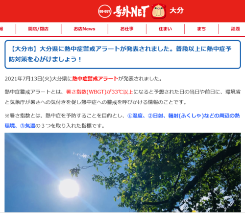 梅雨明けしましたね 熱中症気を付けてくださいね 2021年07月15日 ブログ (号外NETおおいたさんのサイトよりお借りしました) おはようございます 今日も暑くなりそうです 大分市は先日13日に梅雨明けしましたね 今日も警戒レベルが厳重警戒となっている様です 皆さま 体調管理、充分に気を付けてお過ごしくださいね #梅雨明け#暑い#警戒#熱中症対策#水分補給#気を付けて #玉井トーヨー#玉井不動産#LIXIL#リフォーム#中戸次 スヌーピーキャラ弁 新蕎麦を食べに… 一覧に戻る related post関連記事 お知らせ~これまでありがとうございました💛 最近お気に入りの場所! 桜が満開です きれいですね(*^-^*) 春の散歩🌸 モコチャン トリミングですっきりしてきました(#^.^#) コロナワクチン3回目❗ スタバの春限定ドリンク さくらストロベリー白玉 湯布院へドライブ🚙 イチゴとお散歩花見! 別府の甘味茶屋 久しぶりに行ってきました~(*^-^*)